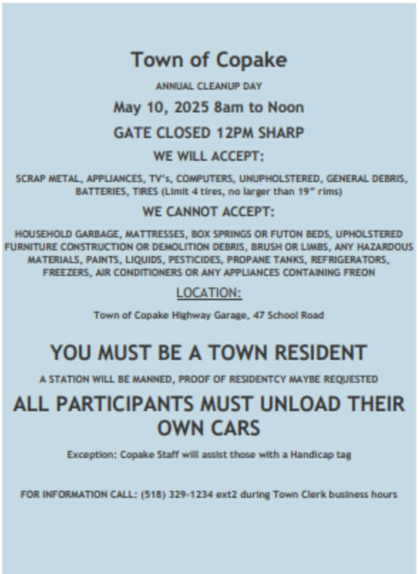 Accepting scrap metal, appliances, TV’s, computers, unupholstered furniture, general debris, batteries, tires.